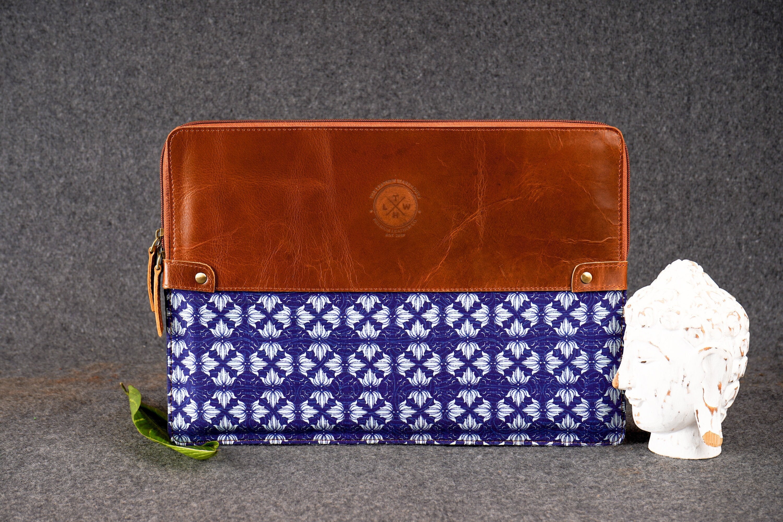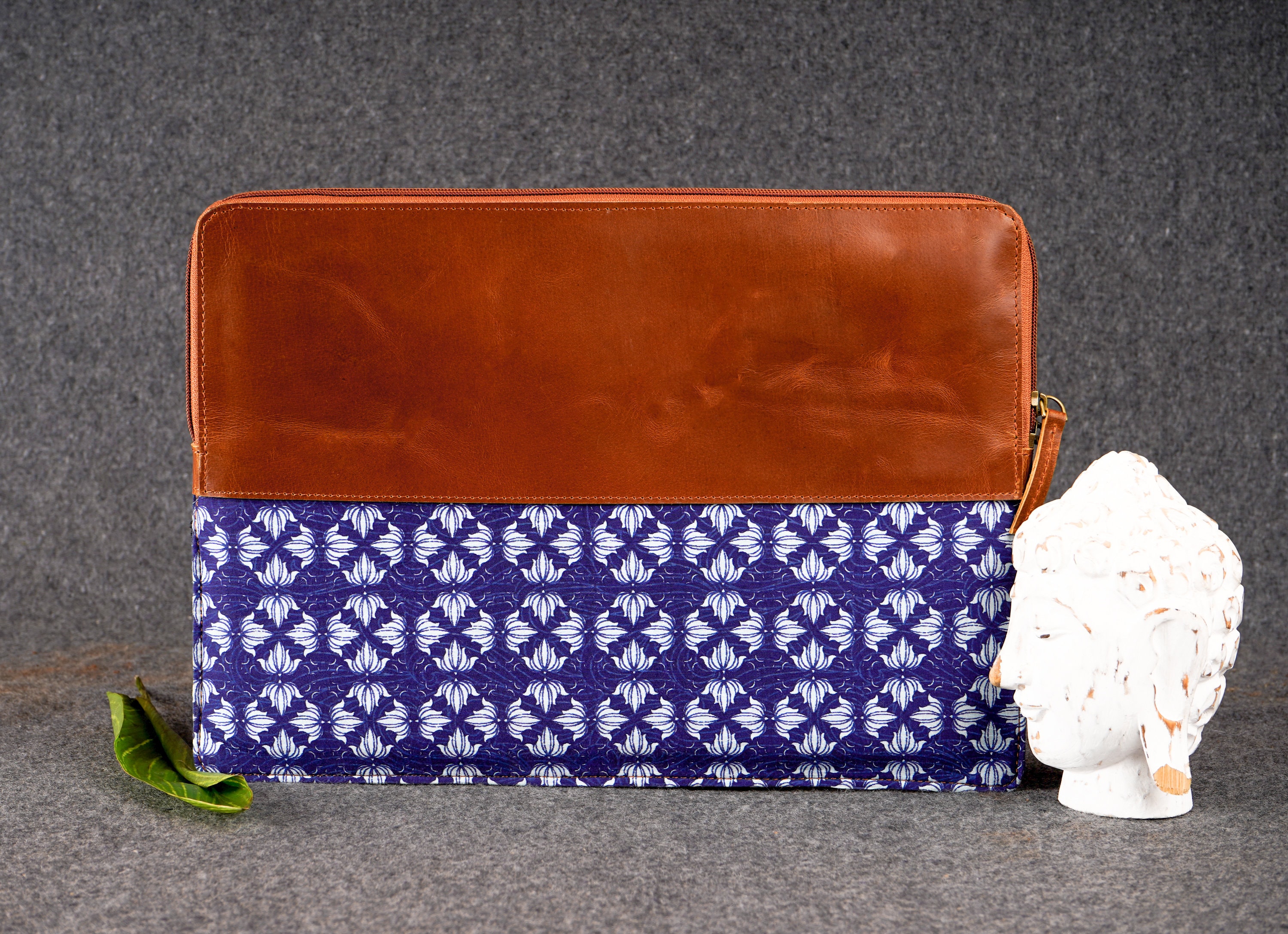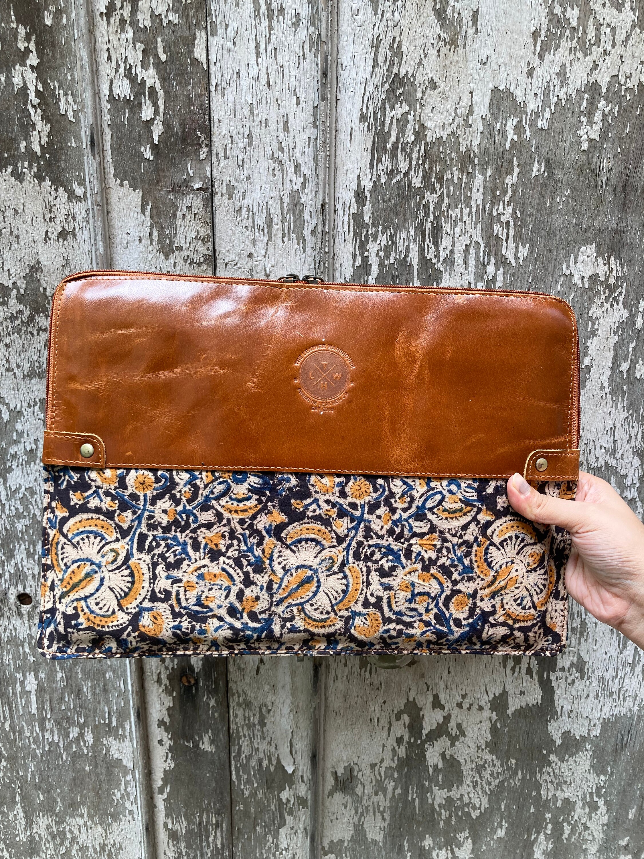 Material: Genuine Leather, hand-painted fabric (kalamkari), Velvet lining, YKK Zipper, Antique brass Fixtures