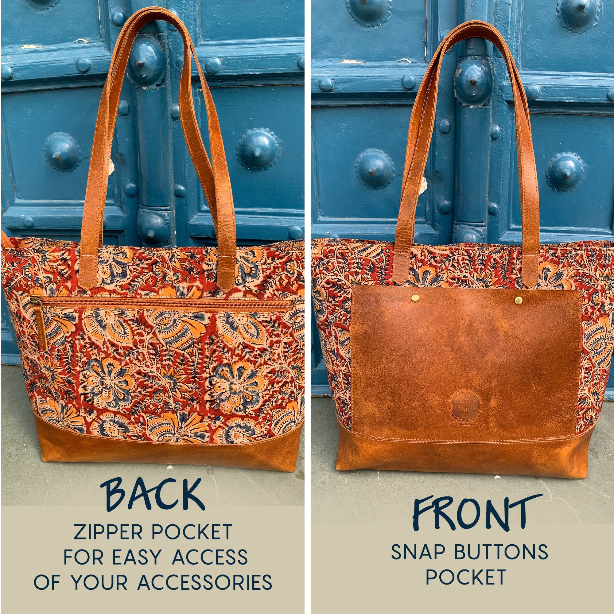Beautifully crafted by hand using vegetable-tanned full-grain leather, this women's tote is designed to last a lifetime. It's finished with YKK zippers and antique brass hardware. For enhanced durability, 12 brass rivets are present on pressure points.