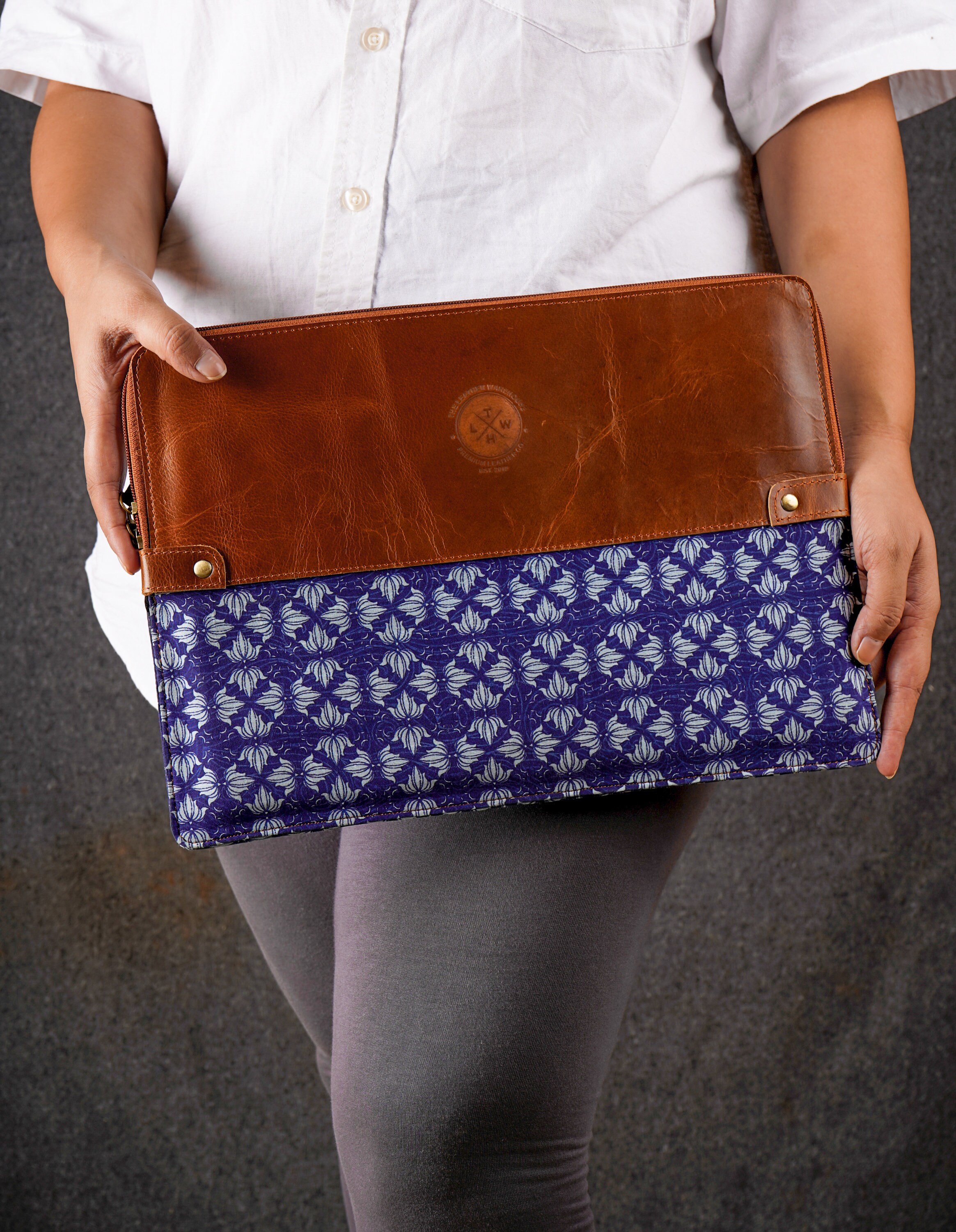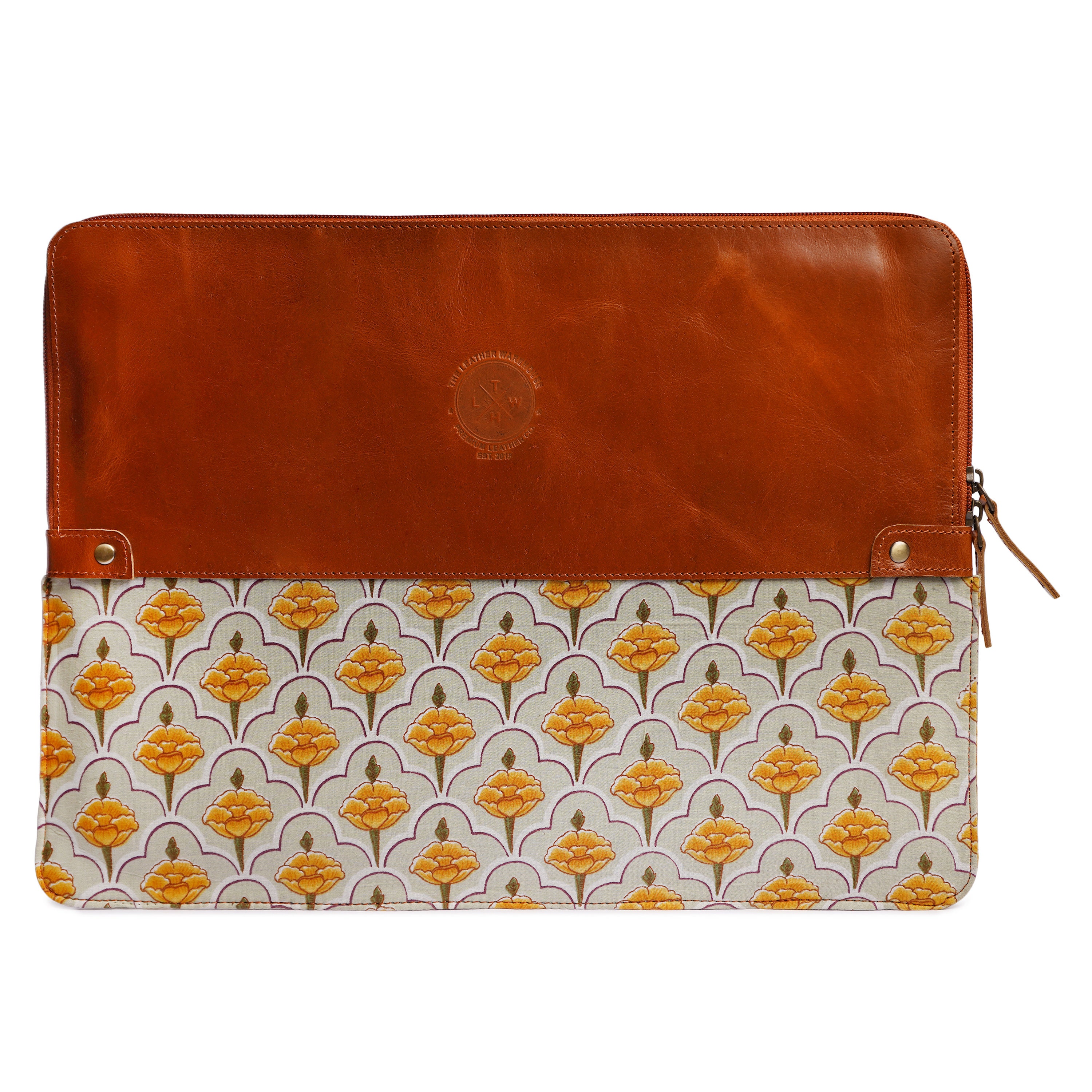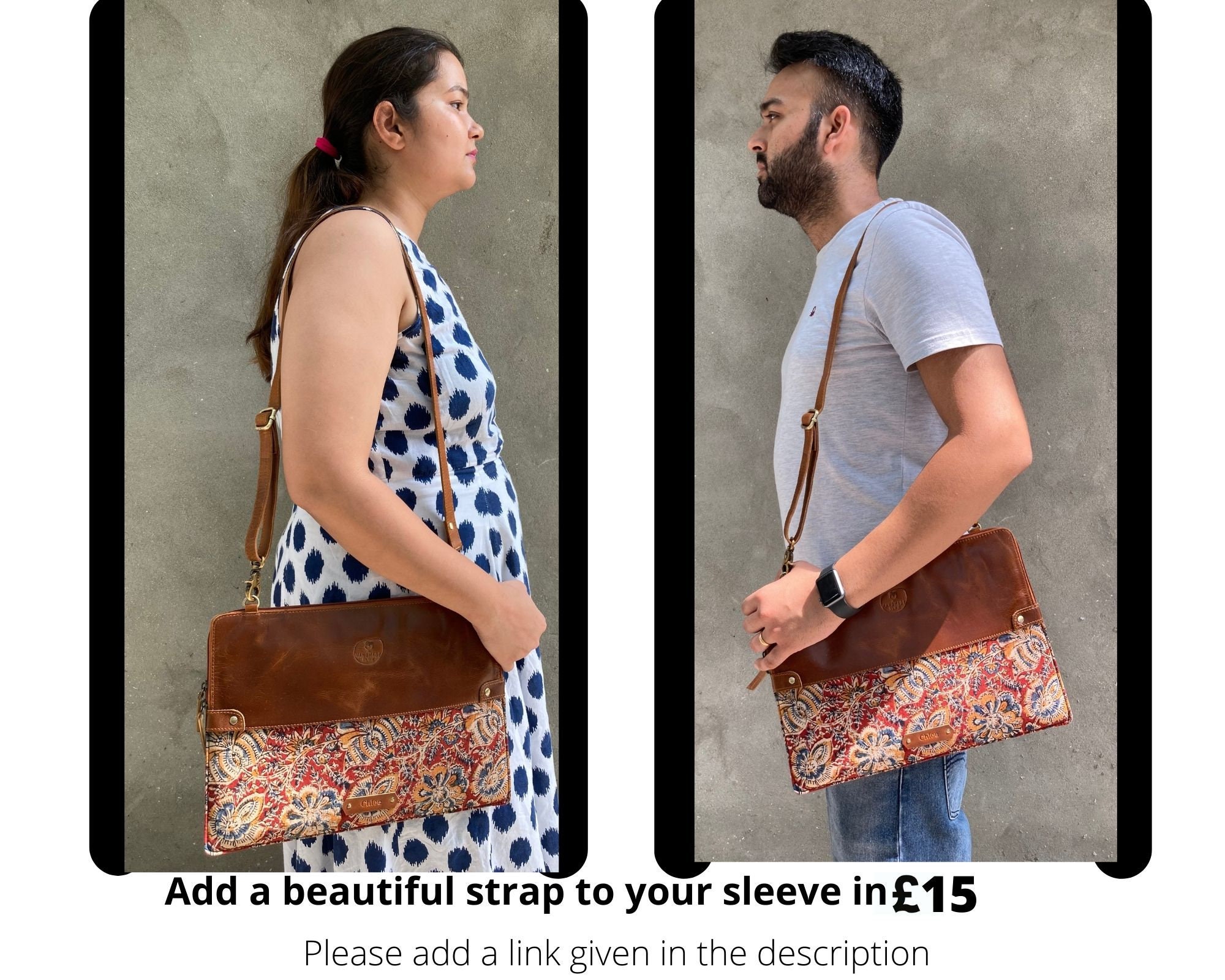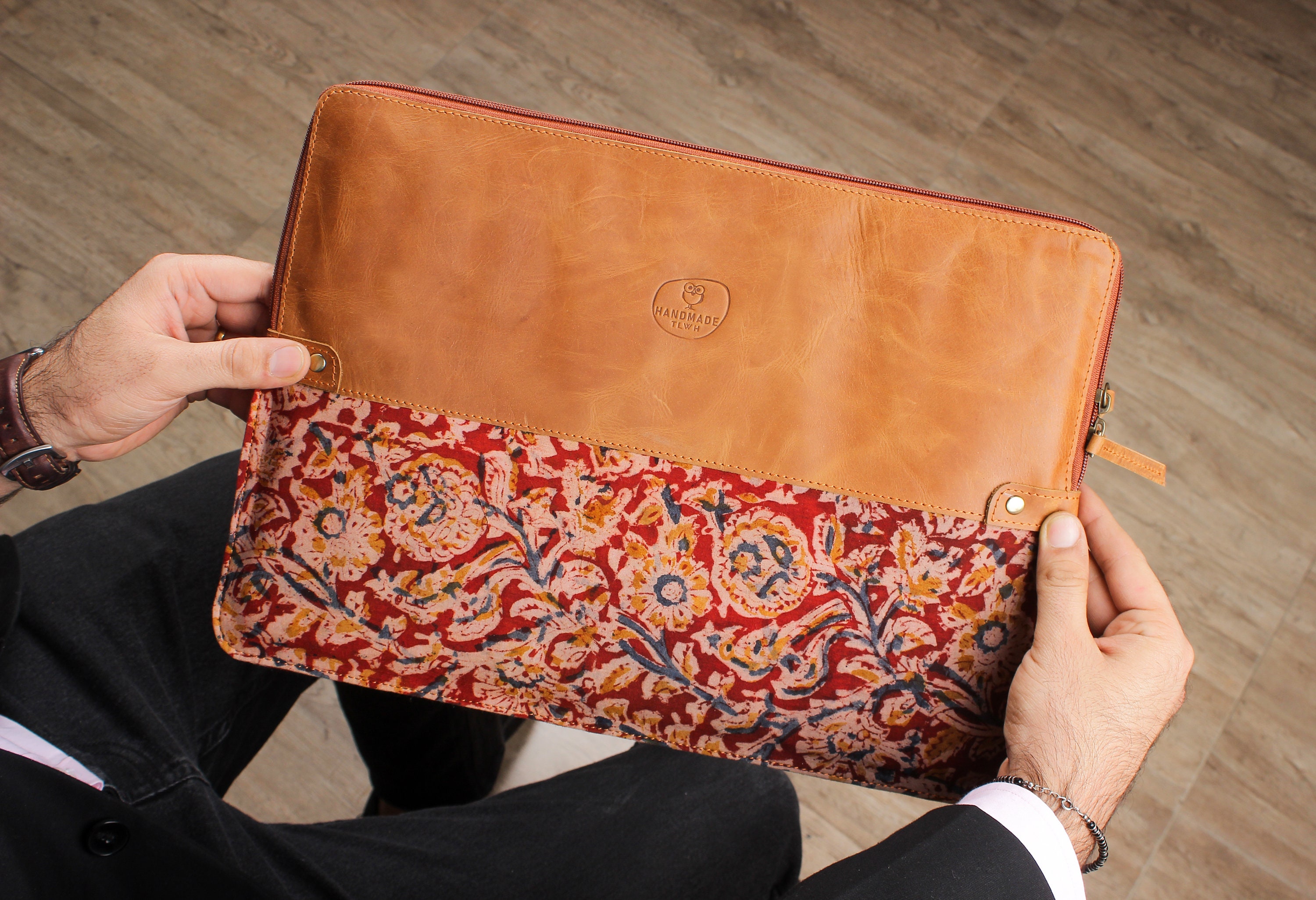 Material: Our sleeves are made of superior Full Grain Buff leather and block print fabric (aka Kalamkari fabric). The soft velvet lining given inside protects your laptop from small knocks and scratches, offering good protection in daily use.