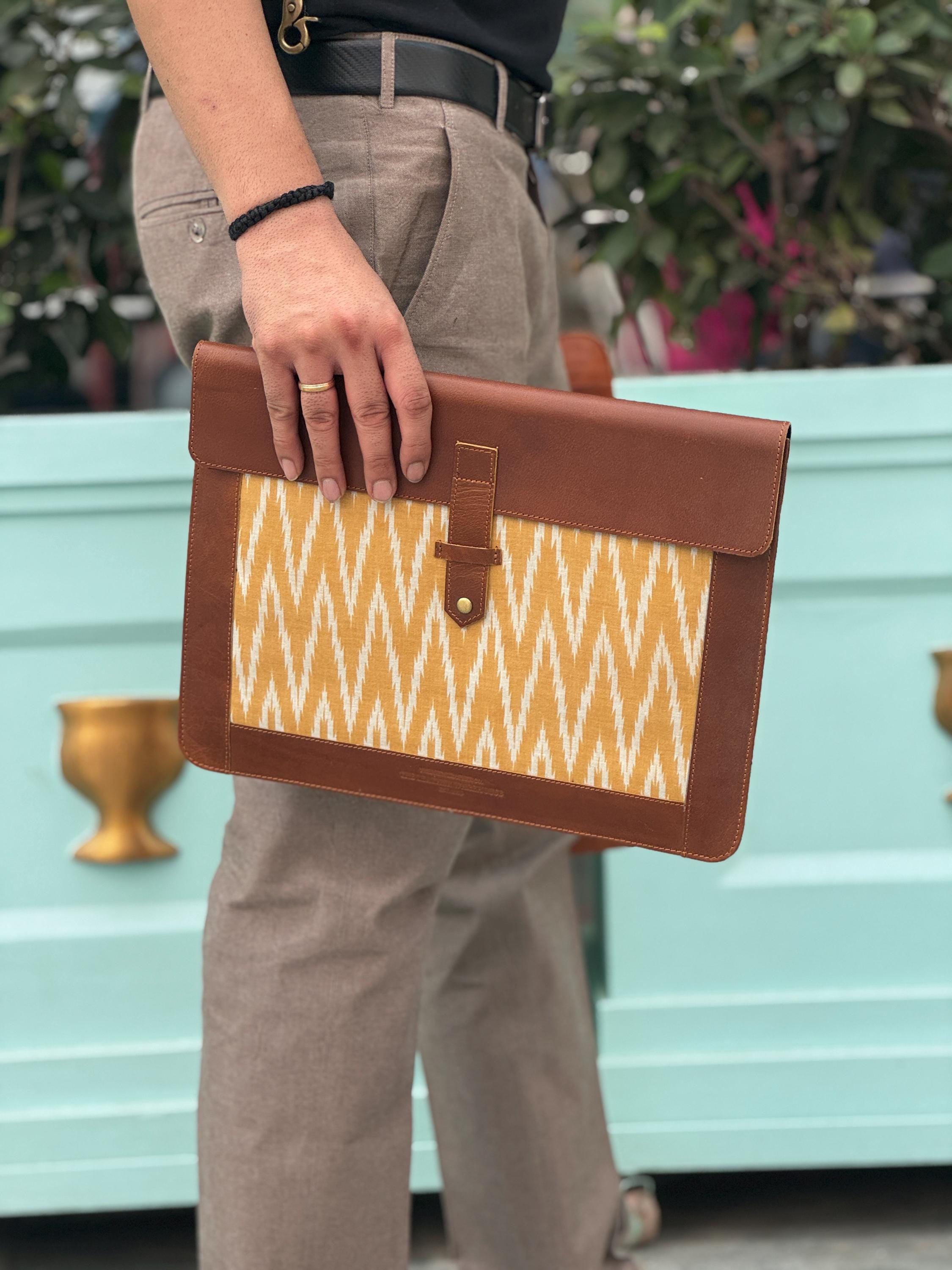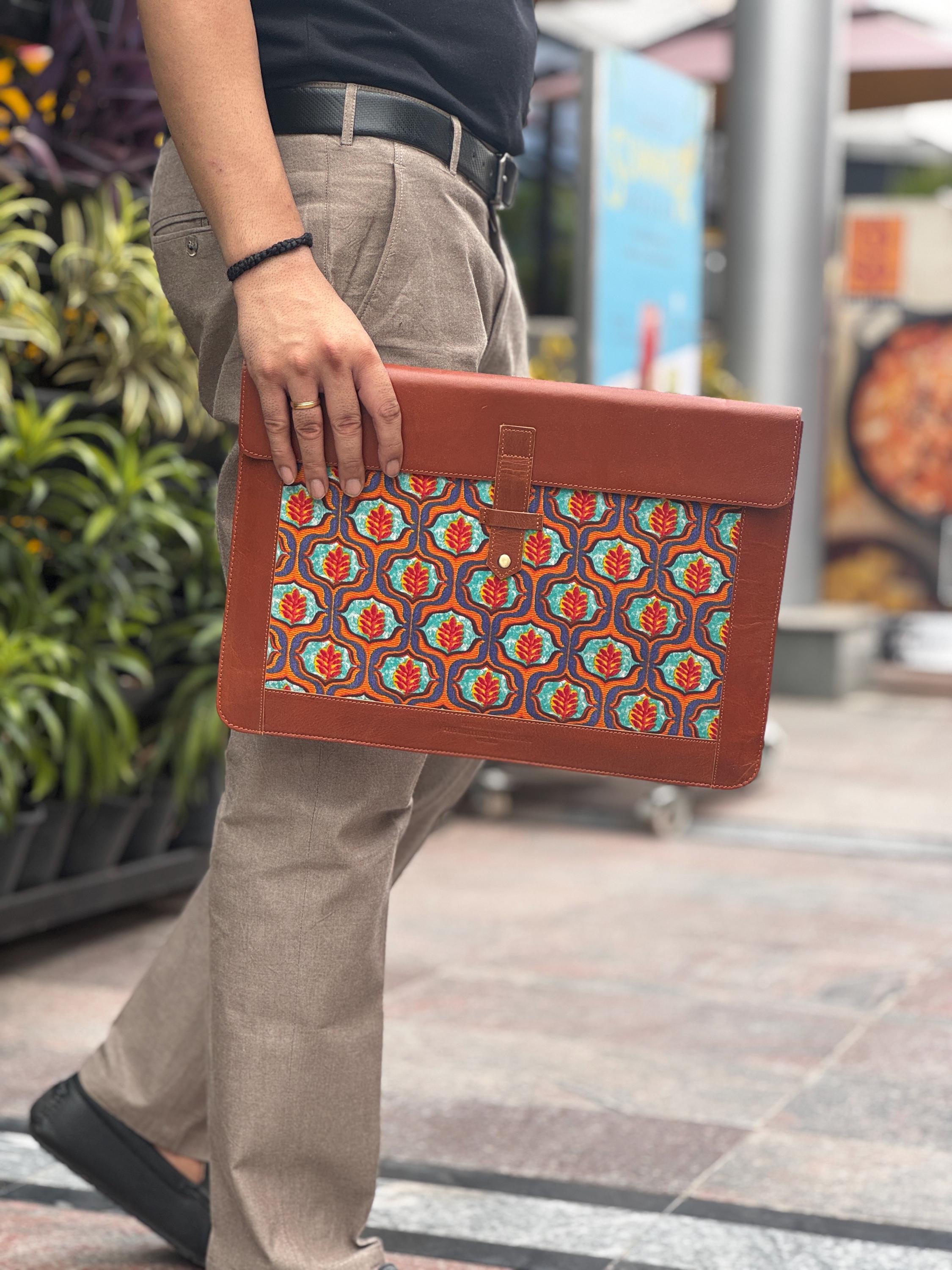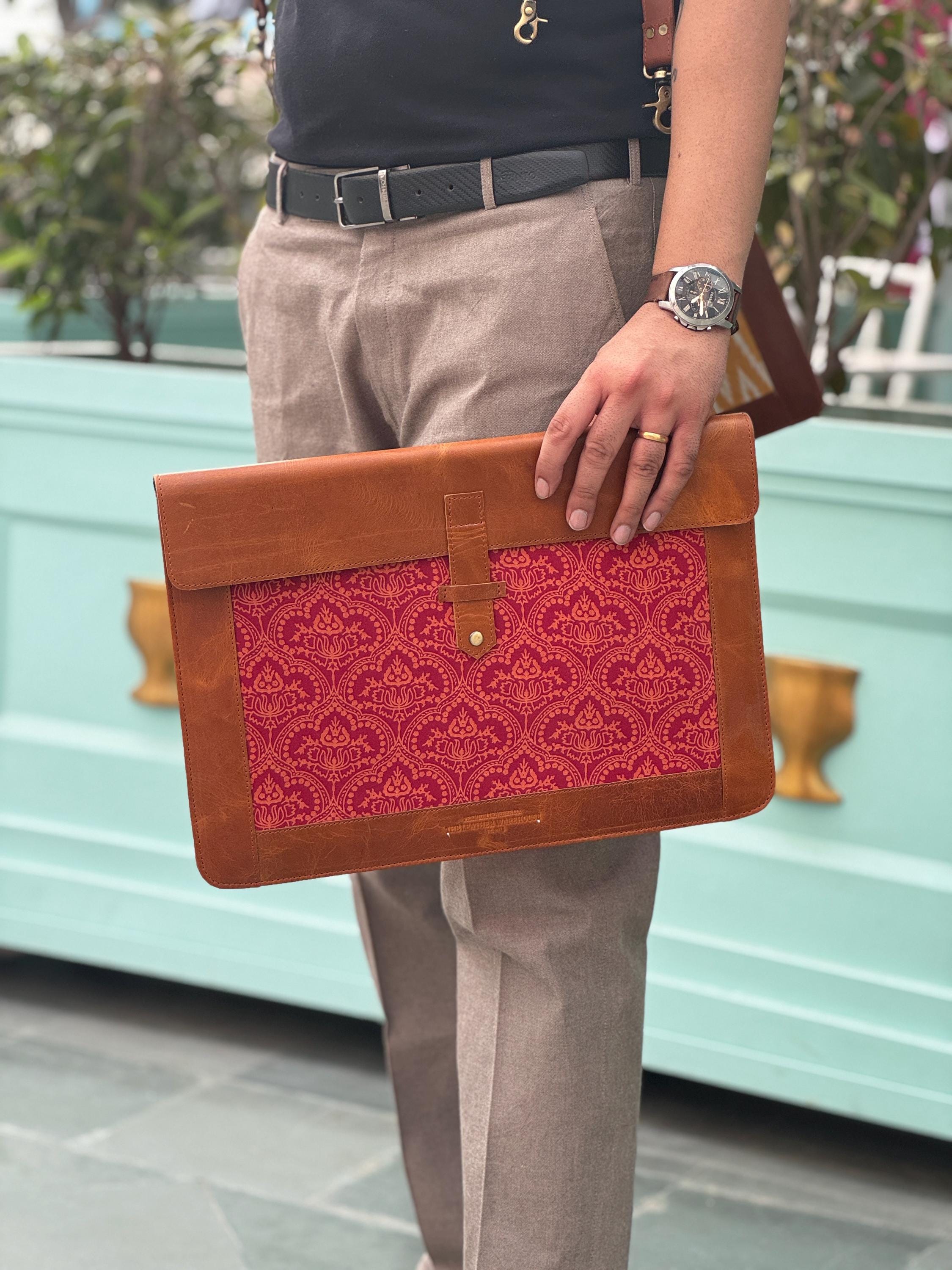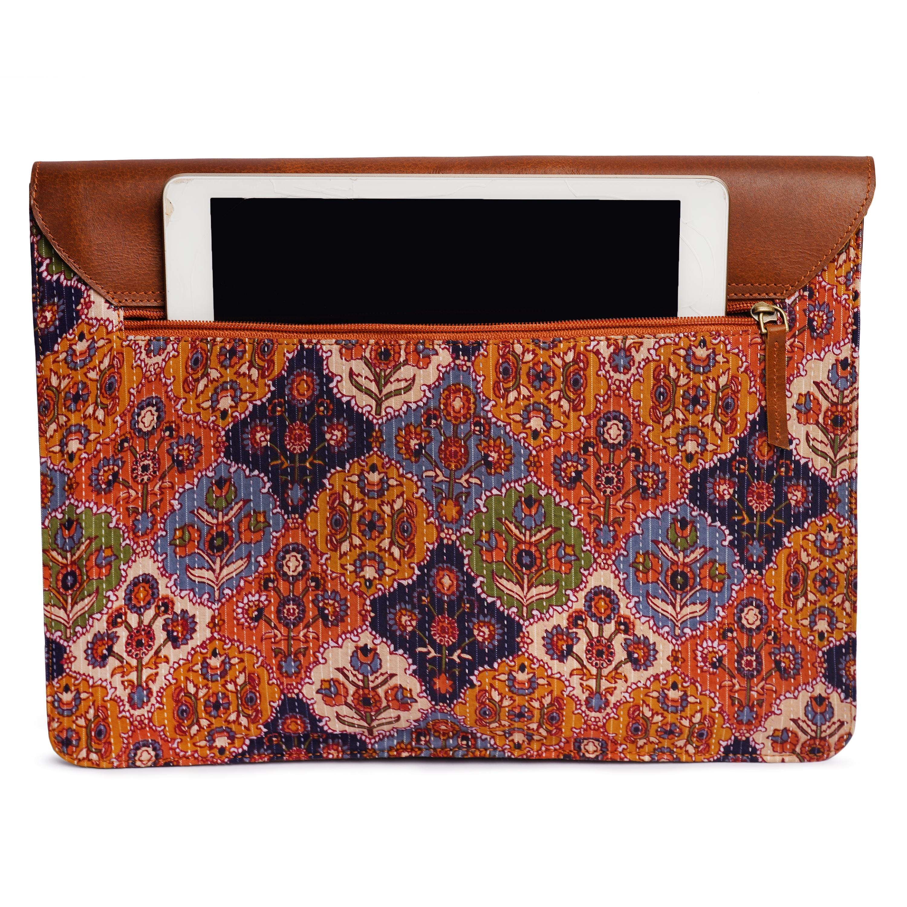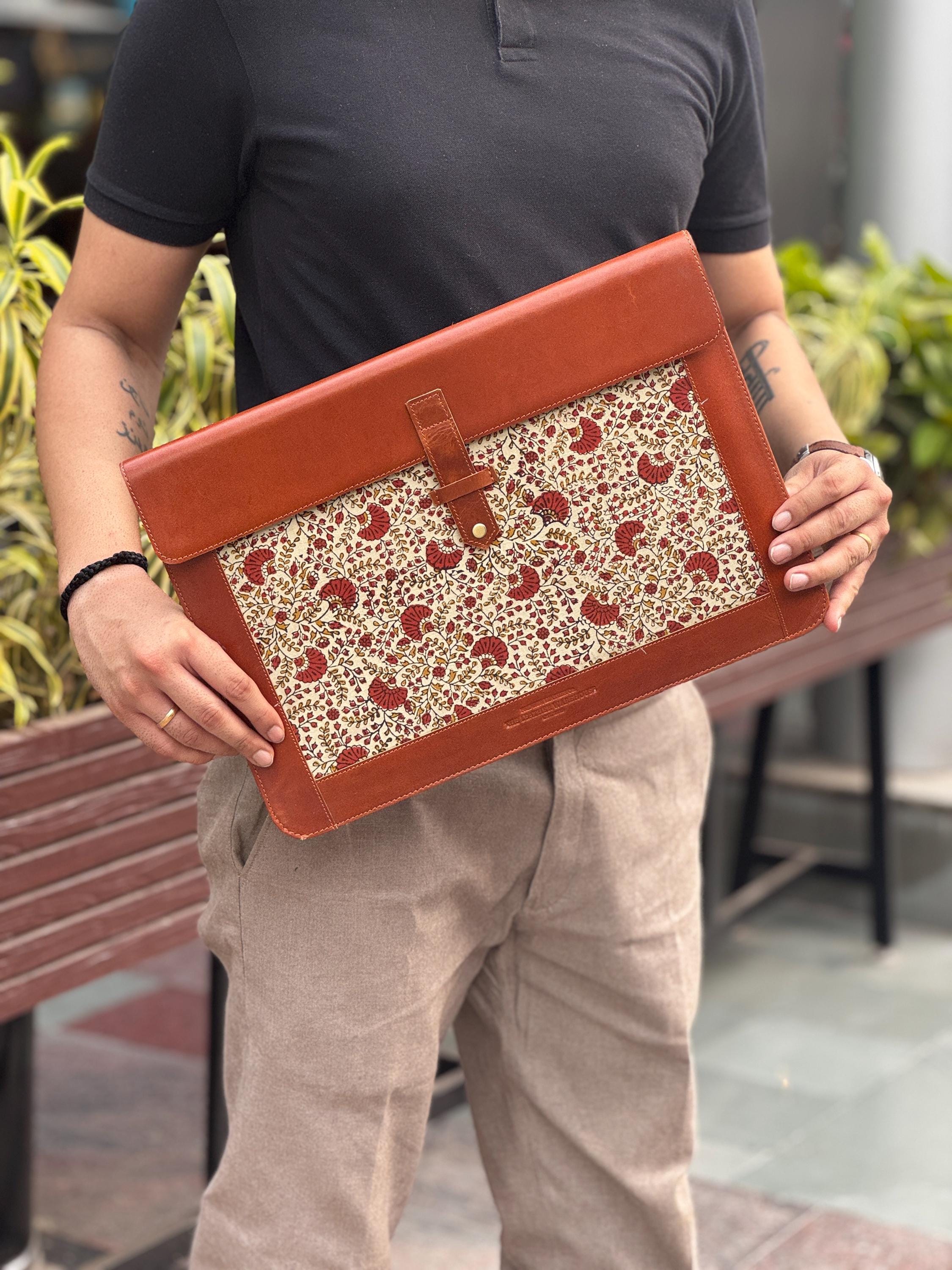 Handmade Leather MacBook Sleeve: Kalamkari Fabric, Padded Laptop Case