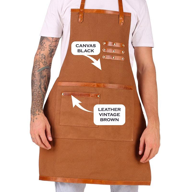 Leather Personalized Apron with Adjustable Strap and Pockets